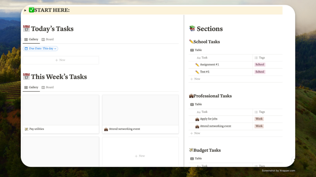 Maximize your productivity and stay organized with this comprehensive "To-Do List" template. Designed for students, professionals, and anyone looking to manage their tasks effectively, this template helps you prioritize daily tasks, plan your week, and categorize your to-dos. With integrated communication channels and the power of Notion AI for task creation, summarization, and prioritization, visualize your progress effortlessly. Perfect for maintaining your academic, professional, and financial responsibilities, this template is your go-to tool for mastering your busy life.